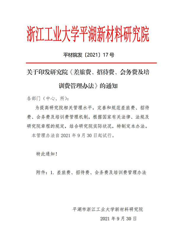 关于印发研究院《差旅费、招待费、会务费及培训费管理办法》的通知