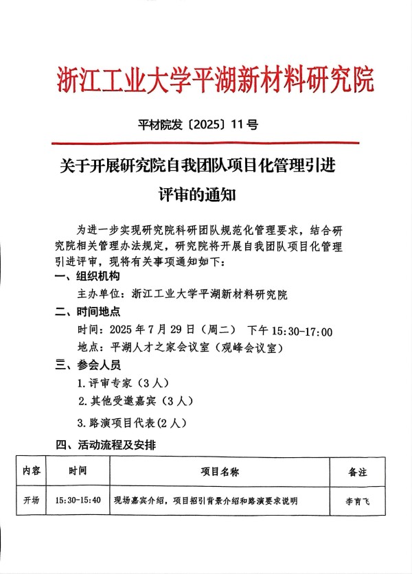 关于下达研究院自我团队项目化管理引进评审结果的通知